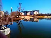 Став в селі. Вигляд на новобудови ІнтерГалБуда і хатку лебедів