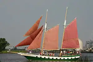 Над гафельними вітрилами зазвичай підіймають топселі, але на марсельних і брамсельних шхунах замість них використовують прямі вітрила (марселі, брамселі).