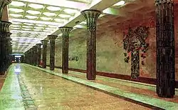 Оформлення станції виконано художником С. Султонмурадовим. Для оздоблення станції застосовані мармур, граніт, метал, скло, композиції з художньої кераміки. Колони, що підтримують склепіння станції мають багато граней, верхня частина колон має потовщення. Освітлюється станція світильниками прихованими в куполах.