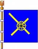 Прапор повторює ідею герба: на синьому тлі золотий Гаївський Криж із закомпонованим зображенням сонця з вісьмома променями у вигляді козацьких шабель.