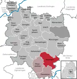 ![]() Гаїнген на карті району |