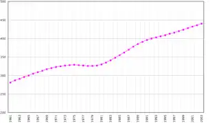 | Населення | 11437 | 106593 | 174231 | 276545 | 305312 | 315848 | 317269 | 353431 | 386566 | 400736 | 403355 |