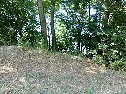 Залишки замкових валів досі можна побачити — вони оточують шкільний спортивний майданчик.