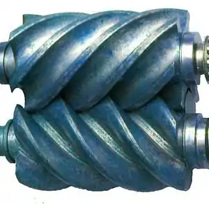 Гвинтові поверхні роторів і стінок корпусу утворюють робочі камери. При обертанні роторів об'єм камер збільшується, коли виступи роторів віддаляються від западин і відбувається процес всмоктування. Коли об'єм камер досягає максимуму, процес всмоктування закінчується і камери виявляються ізольованими стінками корпусу та кришками від всмоктувального і нагнітального патрубків.