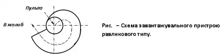 Найчастіше використовують завантажувальний пристрій равликового типу, що являє собою спіральний жолоб зі зростаючим радіусом кривизни. Ґвинтовий жолоб виготовлюють з чавуну, силуміну, полімерних матеріалів, або залізобетону. Кожний виток жолоба скл