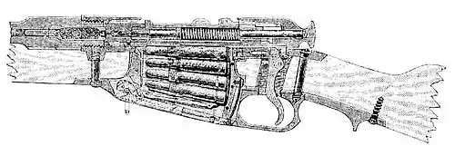 Наприклад, у США під час громадянської війни та бойових дій проти індіанців використовували магазинні гвинтівки Спенсера з прикладним магазином, Генрі з підствольним магазином і перезарядженням рухомою спусковою скобою, та інші системи.