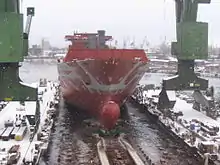 Спуск на воду судна у цеху «В1» (2005)