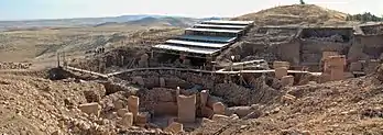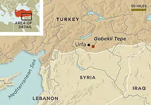 Гебеклі-Тепе, Ґьобеклі-Тепе (тур. Göbekli Tepe — «Пузатий пагорб», відомий також як «Пупковий пагорб» або «Пупкова гора»[3][4][5]) — один з найдавніших і найвідоміших храмових комплексів Північної Месопотамії. Розташований за 12 кілометрів на північний схід від міста Урфа, та за 2,5 кілометри від села Оренчик (Örencik) (зараз це південно-східна частина Туреччини)[6]. Комплекс вважають найдавнішою з нині відомих мегалітичною спорудою у світі. Його вік становить не менше 12 000 років, орієнтовно датується щонайменше 9-тим тисячоліттям до нашої ери[7]. Являє собою круглої форми споруди (концентричні кола), кількість яких доходить до 20, згідно з геомагнітними дослідженнями, проведеними у 2003 році.[8]. Поверхня деяких колон покрита рельєфами. Комплекс було навмисно засипано піском у VIII тисячолітті до н. е. Він довгий час (9500 років) був прихований під пагорбом Гебеклі-Тепе висотою близько 15 метрів і діаметром близько 300 метрів. Археологічні знахідки в Гебеклі-Тепе і Невали-Чорі революційним чином[8] змінили уявлення про ранній неоліт на Близькому Сході та у Євразії в цілому.