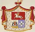 Другий син Гедиміна Наримунт (Гліб) (бл. 1294[6]—1348) при житті свого великого батька шукав вотчин на стороні. У 1333 р. він затримав на Волині новгородського архієпископа Василя і шантажем домігся від останнього згоди на утвердження себе служилим князем у Новгороді. І хоча вже 1335 р. Наримунт залишив місто (щоб заволодіти вакантним престолом князівства Полоцького), проте його нащадки пам'ятали про першу «вотчину» пращура. У гербах старших російських Гедиміновичів — князів Голіциних, Куракіних та Хованських — разом із «Погонею» межує старовинний герб Новгородської землі. До речі, саме Наримунт першим і використав традиційний потім герб «Погоня» — на своїй власній печатці, якою скріпив договір із ризькими німцями в 1338 р[6].