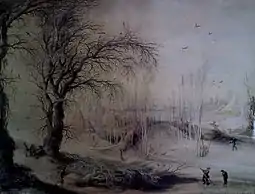 - «Зимовий пейзаж з мисливцем у замерзлого ручая»