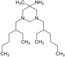 Bactidol, Hexetidine, mixture of stereoisomers, NSC 17764, 5-Amino-1,3-bis(2-ethylhexyl)hexahydro-5-methylpyrimidine Collu Hextril, Collu-Hextril, Doreperol, Duranil, Elsix, Gurgellösung N, Stas, Hexigel, Hexoral, Hextril, Oraldene, Oraldine, Oralspray, stas Gurgellösung N, Steri sol, Steri-sol, Vagi Hex, Vagi-Hex, VagiHex[3][4]