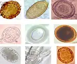 ![]() Представник гельмінтів — Dirofilaria repens в мазку крові собаки. | ||||||||||