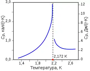 У 1932 році Кеєзом досліджував характер зміни теплоємності рідкого гелію з температурою. Він виявив, що близько 2,19 K повільний і плавний підйом теплоємності змінюється різким падінням, і крива теплоємності набуває форму грецької букви λ (лямбда). Звідси температурі, при якій відбувається стрибок теплоємності, присвоєно умовну назву «λ-точка»[10]. Більш точне значення температури в цій точці, встановлене пізніше, — 2,172 K. У λ-точці відбуваються глибокі і стрибкоподібні зміни фундаментальних властивостей рідкого гелію — одна фаза рідкого гелію змінюється в цій точці на іншу, причому без виділення прихованої теплоти; має місце фазовий перехід II роду. Вище температури λ-точки існує так званий гелій-I, а нижче її — гелій-II[10].