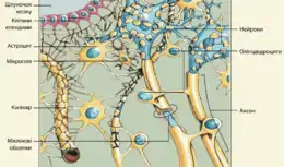- Цибулиноподібні «ніжки» астроцитів, які щільно обліплюють капіляри. Хоча ці структури роблять внесок у створення ГЕБ, їхня роль полягає не стільки у безпосередньому забезпеченні непроникності, скільки в тому, що вони стимулюють ендотеліоцити до утворення щільних контактів.