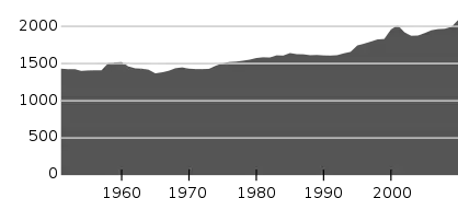 У 1647 році населення становило близько 400 чоловік (точна кількість невідома). До середини 19 століття чисельність населення постійно збільшувалася. У 1845 році в комуні проживало 1775 чоловік. Однак протягом наступних 75 років населення знову скоротилося. У 1920 році кількість впала до 1358, перш ніж знову почати зростати.[10]