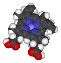 Гем — небілковий фрагмент гемоглобіну. Комплекс, який складається з йона феруму, координованого з порфірином, що виступає як тетрадентатний ліганд, та з одним або двома аксіальними лігандами. Має майже планарну структуру.