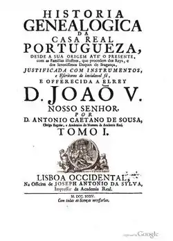 - Генеалогічна історія португальського королівського дому (порт. Historia genealogica da casa real portugueza) — повна назва.