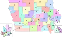 Генеральна асамблея штату Айова складається із 50 сенаторів та 100 представників. Кожен сенатор представляє приблизно 60 927 жителів штату, а кожен член Палати представників представляє приблизно 30 464 жителів штату, відповідно до перепису населення 2010 року.[1] Всі члени асамблеї обираються із виборчих округів, утворених таким чином, щоб в них проживала якомога більш однакова кількість виборців. На території штату є 50 сенатських виборчих округів, і кожен з них поділяється на два представницьких виборчих округи. Остання зміна виборчих округів, з яких обираються депутати обох палат, відбулась 19 квітня 2011 року, перед виборами 85-го скликання законодавчого органу в 2012 році.[2] Генеральна асамблея збирається щорічно в другий понеділок січня.[3]