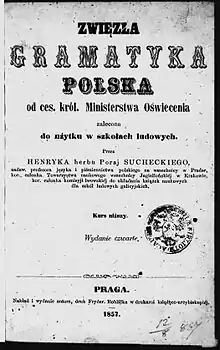 - Zwięzła gramatyka polska, kurs niższy. Wyd. II, przerobione, Lwów, 1853. — Wyd. III, Lwów, 1854. — Wyd. IV, Praga, 1857. — Wyd. V, Praga, 1859
