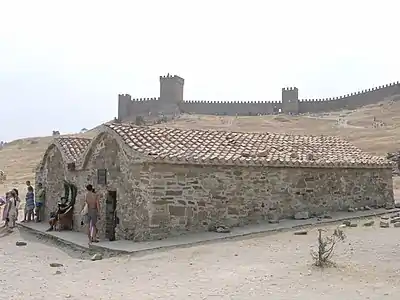 - мечеть Падишах Джамі — розташована у східній частині фортеці. Імовірно, побудована турками-сельджуками у 20-і роки XIII століття. Потім вона була перебудована у православний храм, а після цього генуезцями — у храм католицький. Після взяття Судака османами вона знову перетворилася на мечеть. Після захоплення Криму Росією, тут послідовно були православна військова та вірмено-католицька церква, німецька кірха. Зараз там розташований історико-археологічний музей.