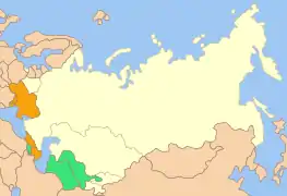Країни-члени ЄвраАзЕС (жовтий) і ГУАМ (помаренчевий)