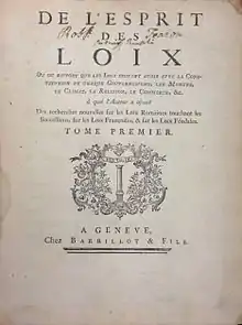 ![]() «Дух законів» Шарля Монтеск'є, 1748 рік |