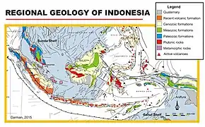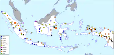 Надра Індонезії багаті на ряд корисних копалин: нафту, олово, природний газ, нікель, боксити, мідь, кам'яне вугілля, золото, срібло[7].