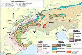 Альпи — складна система гірських хребтів, що заходять також на територію східної Франції, Швейцарії, Австрії і Словенії. Інша велика гірська система Італії — Апенніни — утворює кістяк однойменного півострова і продовжується в Сицилії. Альпи і Апенніни так тісно пов'язані між собою, що важко встановити, де кінчається одна система і починається інша. Альпи і Апенніни — відносно молоді гори, що сформувалися в палеогені і неогені (в інтервалі від 65 млн до 2 млн років тому). Тут відбувалися також численні тектонічні розломи, складкоутворення й вулканічні виверження. Останні особливо виражені в областях Лаціо і Кампанія на заході Апеннінського півострова і на Сицилії.