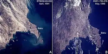- екологічну катастрофу Апшеронського півострова, на якому розташовані такі великі міста, як Сумгаїт і Баку, внаслідок більш ніж сторічної інтенсивної експлуатації нафтових ресурсів, що призвела до забруднення вод Каспійського моря і водоносних горизонтів, ґрунтів, повітря;