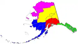 Хоча офіційно визначених меж між регіонами Аляски немає, вона загальноприйнято ділиться на шість регіонів[джерело?]: