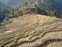 Тераси сільгоспугідь на схилах пагорбів