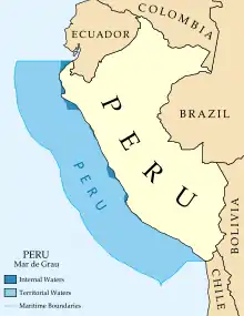 Перу — південноамериканська країна, що межує з п'ятьма іншими країнами: на півночі — з Еквадором (спільний кордон — 1529 км) і Колумбією (1494 км), на південному сході — з Болівією (1212 км), на сході — з Бразилією (2659 км), на півдні — з Чилі (168 км). Загальна довжина державного кордону — 7062 км[1]. Перу на заході омивається водами Атлантичного океану[4]. Загальна довжина морського узбережжя 2414 км[1].
