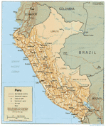 Середні висоти — 1555 м; найнижча точка — рівень вод Тихого океану (0 м); найвища точка — гора Уаскаран (6768 м). На території Перу виділяються гірський пояс Анд, так звана Сьєрра (Західна, Центральна і Східна Кордильєра) висоти до 4000-6000 м (вершина Уаскаран). На сході гірські хребти опускаються до Амазонської низовини, так званої Сельви, яка переходить на півдні в передгірську рівнину Монтанья. На півдні знаходиться велике плоскогір'я Пуна. Уздовж Тихого океану тягнеться вузька смуга пустельних берегових рівнин, так звана Коста.