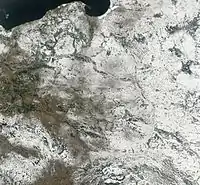 Число днів зі сніговим покривом змінюється і збільшується в міру пересування на схід країни. На Щецинській низовині, Любуських землях і Нижній Сілезії сніговий покрив лежить менш ніж 40 днів на рік, у центрі Польщі близько 60 днів, а в районі Сувалки більше 100 днів. Спекотні дні з максимальною температурою вище 25 °С спостерігаються не часто в період з квітня по вересень, іноді в жовтні.
