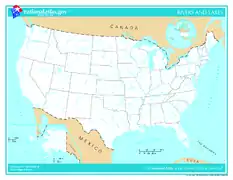 Сполучені Штати Америки — північноамериканська країна, що межує з двома іншими країнами: на півночі — з Канадою (спільний кордон — 8893 км, включно з 2477 км кордону на Алясці), на півдні — з Мексикою (3155 км). 28,5 км державного кордону на Кубі, де розміщується на постійній орендній основі військово-морська база США — Гуантанамо. Загальна довжина державного кордону — 12048 км[1]. Сполучені Штати Америки омиваються водами Тихого океану на заході, Атлантичного — на сході, Північного Льодовитого — на півночі (штат Аляска)[5]. Загальна довжина морського узбережжя 19,9 тис. км.