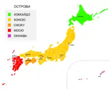 . Японський архіпелаг складається з 6852 великих і малих островів[1], серед яких найбільшими є острова Кюсю, Сікоку, Хонсю та Хоккайдо