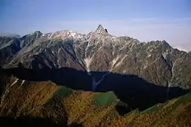 Найвищі гори пролягають в центрі острова Хонсю, в Центральногірському районі. Їх називають Японськими Альпами або Японським хребтом. Вони складаються з хребтів Акаїсі, Кісо, Хіда. Середня висота цих гір коливається в межах 2500—3000 м. Їхні окремі піки перевищують 3000 м над рівнем моря, а річкові ущелини врізаються на глибину до 2000 м.