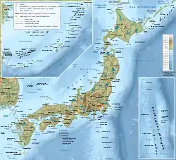 Японський архіпелаг складається з 6852 великих і малих островів[1], серед яких найбільшими є острова Кюсю, Сікоку, Хонсю та Хоккайдо. Менші острови: Садо, Окі, Цусіма, Ґото, Авадзі тощо. До архіпелагу також належать великі групи островів Рюкю, Ідзу та Оґасавара.