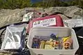 Контейнер з кешем, прив'язаним до нього, з маскувальною сіткою
