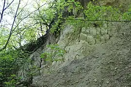 - Вапняк — світло-сірий з коричневим відтінком, з рідкісними уламками раковин (1,1 м).