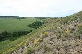 Красноріченське відслонення — відслонення з рештками фауни за 1,5 км на південний захід від села Красноріченське. Серед викопних решток зустрічаються кістки мозазаврів, черепах, зуби акул. У кар'єрі знизу доверху спостерігається наступний розріз: