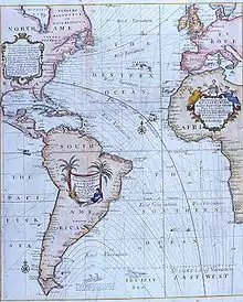 Magnetic declination from true north in 1700
