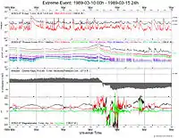 Максимальної інтенсивності геомагнітна буря досягнула 13 березня, коли планетарний індекс Ap досяг значення 246, третього найбільшого показника за весь час спостережень від 1932 року[4], а Dst-індекс геомагнітної активності (англ. Disturbance Storm Time Index) між 1:00 і 2:00 за всесвітнім часом 14 березня досяг значення −589 нТл [6] (−640 нТл за іншими даними[1]), рекордного з 1957 року[5].