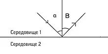 При цьому , де α — це кут падіння, Β — це кут відбивання.