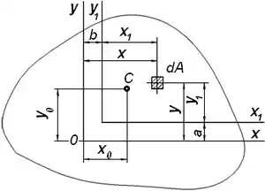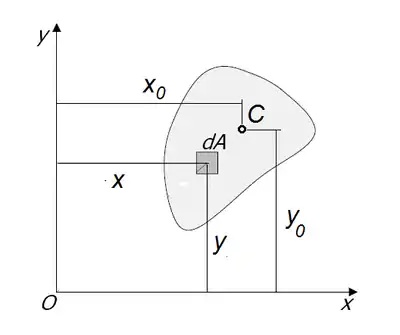 Розглянемо переріз у довільній декартовій прямокутній системі координат xOy. Виберемо елемент площі dA. Тоді величина