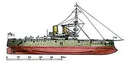 10 жовтня 1907 року — перекласифікований у лінійний корабель та доозброєний новими шестидюймовими гарматами (всього стало 14 штук).