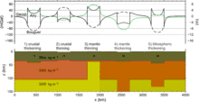 Зміни у висоті поверхні геоїда пов'язані з аномальними розподілами щільності всередині Землі. Виміри геоїда допомагають нам зрозуміти внутрішню будову планети. Синтетичні розрахунки показують, що геоїдний "підпис" більш товстої кори (наприклад, у орогенних поясах, утворених зіткненням континентів) є позитивним, на відміну від того, що очікується, якщо збільшення товщини торкається всієї літосфери.