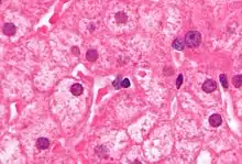 Вірус гепатиту B впливає на функції печінки відтворюючись в її клітинах, які називаються гепатоцитами. Рецептор поки що невідомий, хоча є докази, що рецептор у подібного качиного вірусу гепатиту B є карбоксипептидаза D.[24][25] Віріони прив'язуються до клітини через preS domain поверхневого антигену вірусу, а потім переміщюються всередину ендоцитозом. Рецептори PreS та IgA є причиною цієї взаємодії. HBV-preS-специфічні рецептори виражаються переважно на гепатоцитах; щоправда, вірусна ДНК та білки також були виявлені й поза печінкою, тому припускається, що клітинні рецептори для HBV можуть також існувати на позапечінкових клітинах.[26]