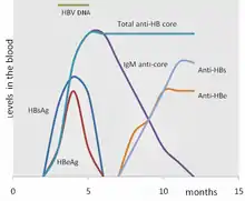 Якщо хазяїн здатен очиститись від інфекції, з часом HBsAg стануть непомітними, і будуть супроводжуватись антитілами IgG до поверхневого та ядерного антигенів, (anti-HBs and anti HBc IgG).[11] Час між зникненням HBsAg і появою anti-HBs називається віконним періодом. Людина з негативним аналізом HBsAg але позитивним anti-HBs або очистилась від інфекції, або вакцинувалась раніше.