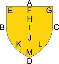 У геральдиці права і ліва сторони щита визначаються не з погляду людини, що дивиться на щит, а з погляду людини, що стоїть за щитом, або воїна, що тримає його в руці. Таким чином, ліва частина щита на малюнку, звана «декстер», звернена до правої руки воїна, вважається правою, а права частина, звана «синістер», звернена до лівої руки (яка тримає щит) вважається лівою. Тому, коли йдеться про орієнтацію елементів герба, наприклад фігури лева, указується, що фігура повернена геральдично вправо (або вліво). Щоб точно визначити, в якій частині щита розташована та або інша фігура, слід розрізняти такі точки або області щита, показані на малюнку.